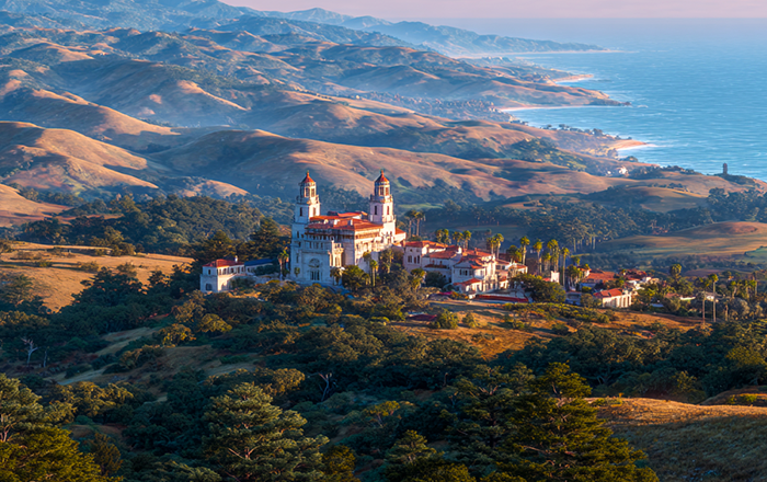 カリフォルニア州セントラルコーストの丘の上にそびえる「ハーストキャッスル(Hearst Castle)」は、