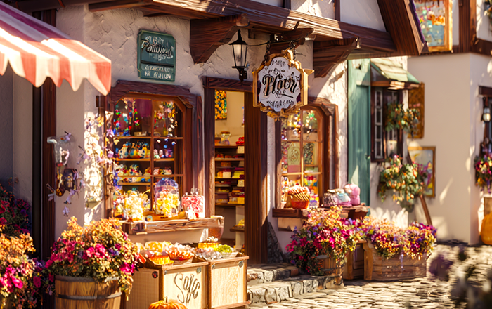クリスマス飾りの専門店やアンティークショップもあり、ウインドウに飾られたガラス細工のランプや民族衣装の人形たちが旅人を歓迎してくれます。