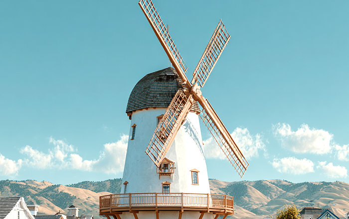 ソルバング市内には4基の木造風車があり、写真スポットとして人気です。